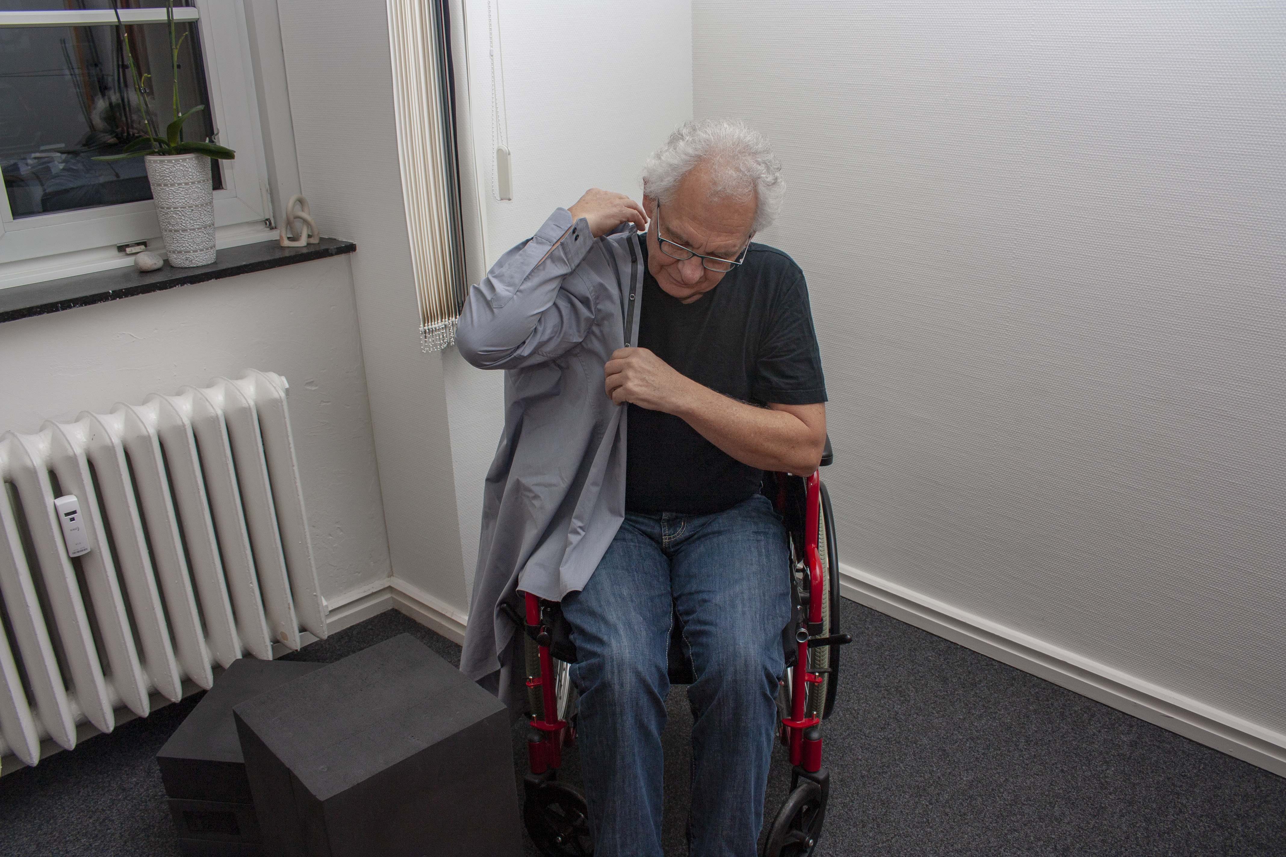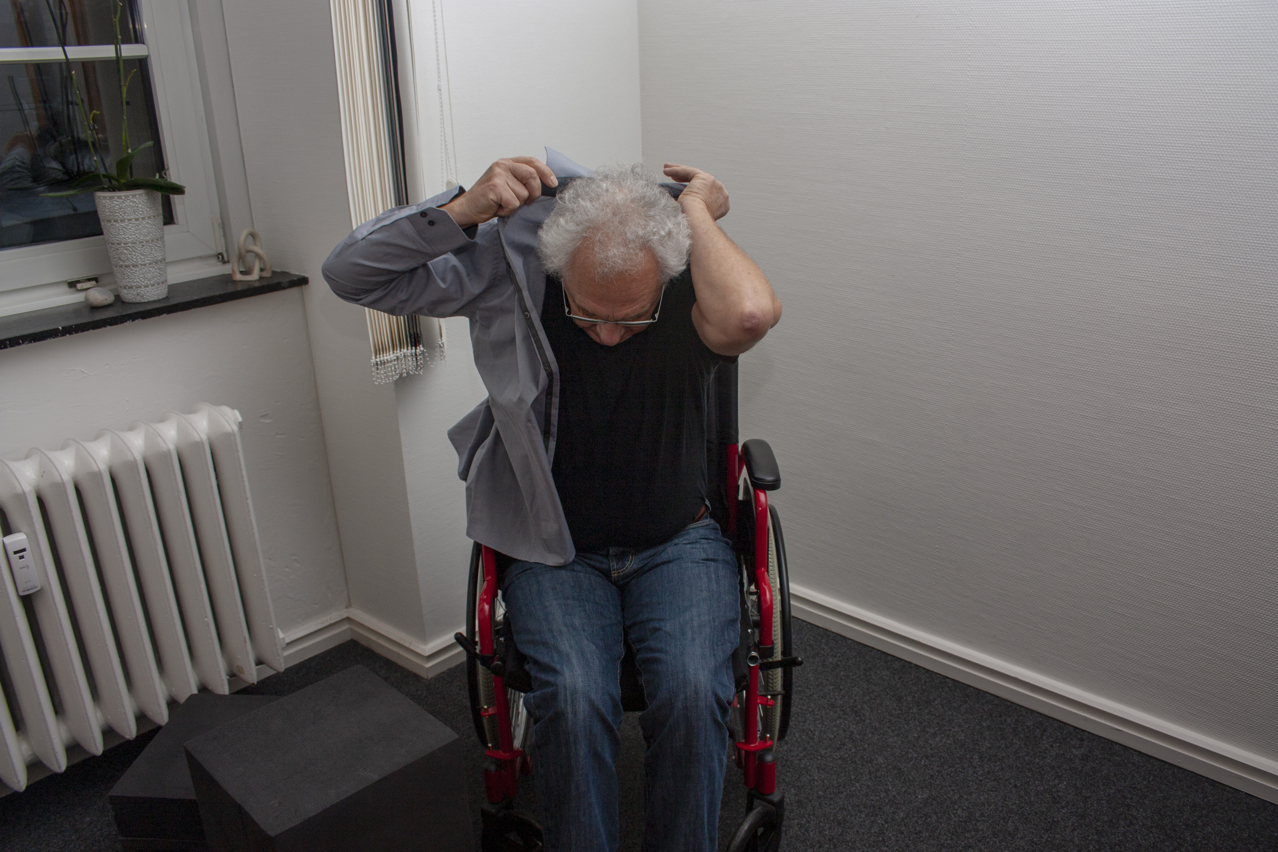 Beim An-und Ausziehen einer Jacke zum Beispiel werden Bewegungen wie Beugen, Strecken und Drehen des Oberkörpers und der Arme gefordert. Voraussetzung ist immer eine gut ausbalancierte Sitzposition. Fallen Bewegungsabläufe schwer kann diese Aktivität genutzt werden, um diese nach und nach wieder zu aktivieren und schrittweise zu trainieren.